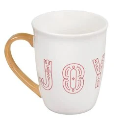 Le Creuset 20 Oz. Noel Collection: XL Mug – White W/ Joyeux Applique & Gold Handle