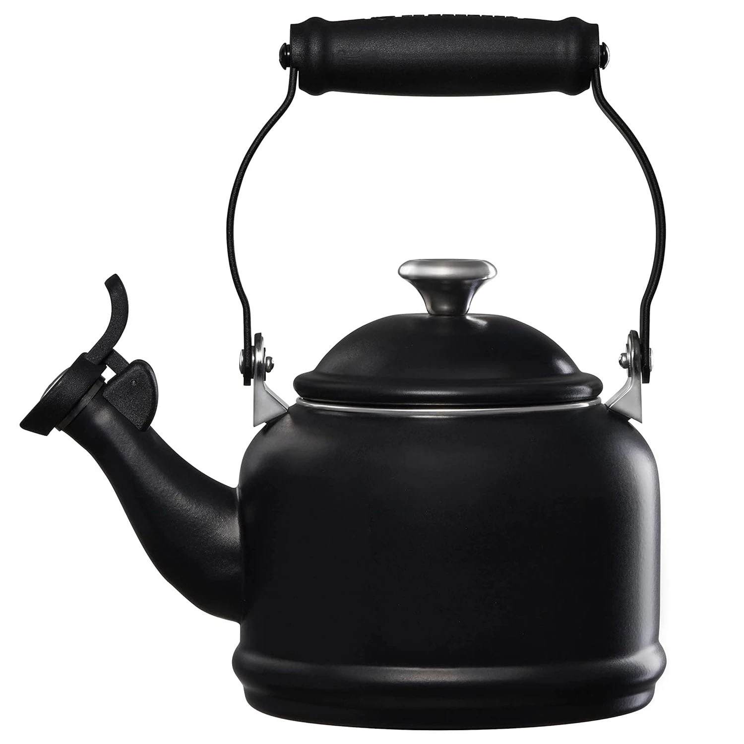 The Le Creuset enamel on steel Demi Kettle is crafted from fast-heating premium carbon steel glazed in our stylish palette of colors and unique designs to complement any kitchen. Useful for preparing French press coffee, oatmeal and much more in addition to tea, durable carbon steel heats water rapidly, and a fixed single-tone whistle alerts when the water has reached a rolling boil. Chip-resistant, non-reactive, resistant to stains, and easy to clean, Le Creuset kettles make excellent gifts and are a beautiful way to add a touch of color to the kitchen.