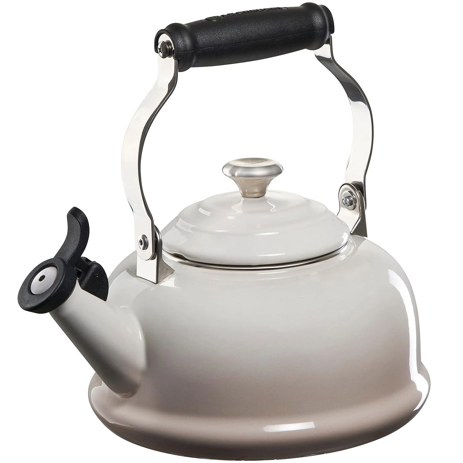 The Le Creuset enamel on steel Classic Whistling Kettle is crafted from fast-heating premium carbon steel and finished with a colorful enamel in our stylish palette of colors to complement any kitchen. Useful for preparing French press coffee, oatmeal and much more in addition to tea, durable carbon steel heats water rapidly, and a fixed single-tone whistle alerts when the water has reached a rolling boil. Chip-resistant, non-reactive, resistant to stains, and easy to clean, Le Creuset kettles make excellent gifts and are a beautiful way to add a touch of color to the kitchen.
