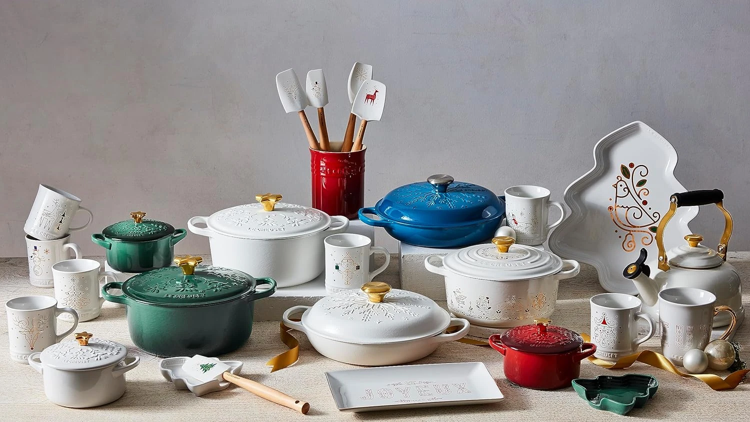 For coffee, tea, hot chocolate and even single servings of soup and dessert, the Noël Collection Mugs are sure to bring light-hearted joy and light to your kitchen this holiday season. Crafted from the finest quality stoneware to keep contents warm or cold, the generously sized 14 fluid-ounce mugs are finished with a vibrant white glaze and adorned with favorite holiday motifs, delicate gold scrollwork and twinkling stars. The durable glaze is easy to clean and resistant to chips, scratches and stains.