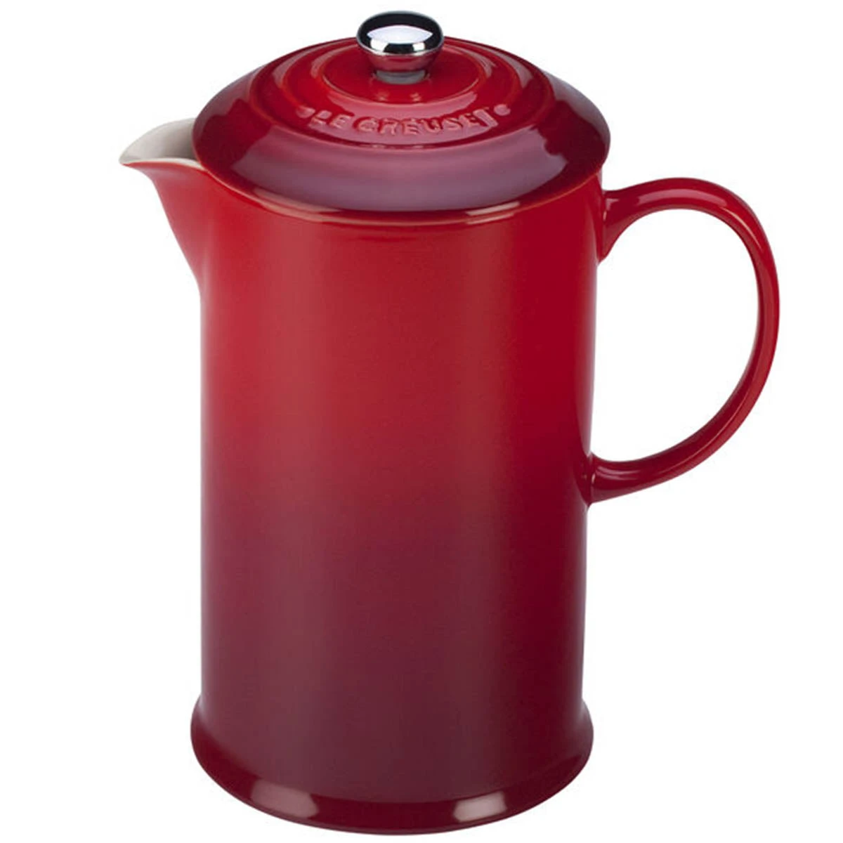 The French Press is one of the easiest methods to make great-tasting coffee at home. Coarsely ground coffee beans or loose tea leaves are steeped in boiling water and then filtered away by plunging the mesh sieve through the press. Crafted from premium stoneware for excellent heat retention, the Le Creuset French Press is finished with a vibrant glaze that is easy to clean, dishwasher-safe, and resistant to chips, scratches, and stains.