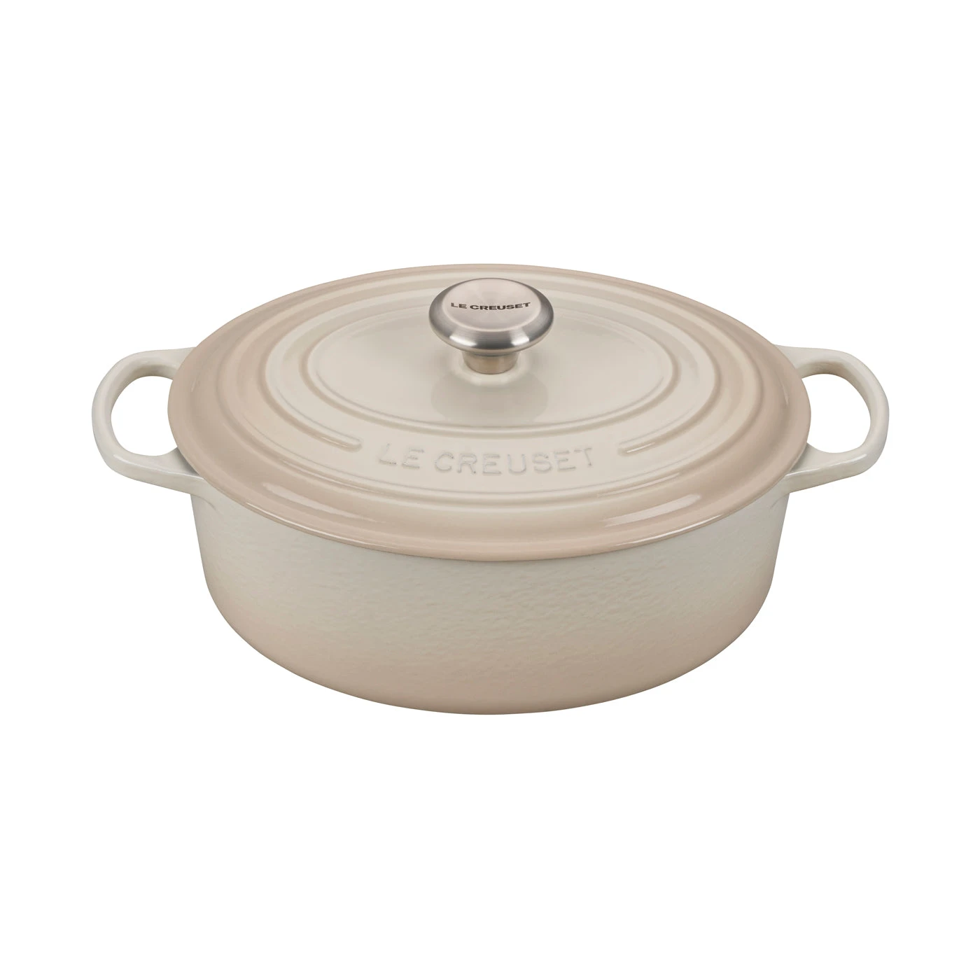 The iconic Le Creuset Dutch oven is indispensable in the kitchens of home cooks and professional chefs alike. Long recognized for its strength and durability, cast iron is the prime material for slow-cooking, braising and roasting, thanks to its ability to maintain even and consistent heat. The enameled Dutch oven needs no seasoning, and it’s suitable for both stovetop and oven use. The oval shape is particularly suited to longer cuts of meat or poultry.
