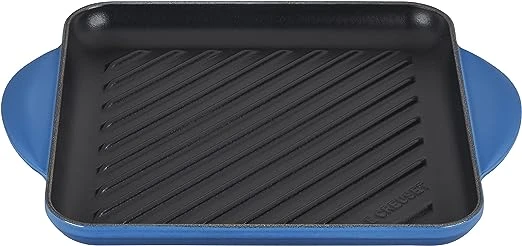The enameled cast iron square grill brings the delicious flavor of outdoor grilling conveniently indoors