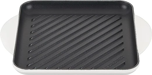 The enameled cast iron square grill brings the delicious flavor of outdoor grilling conveniently indoors