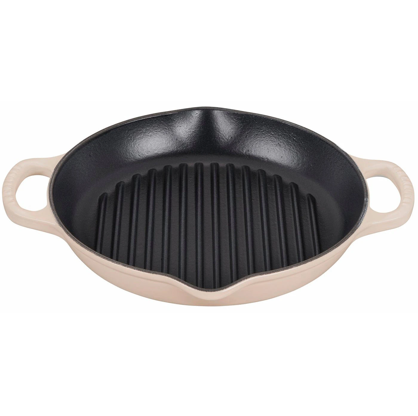 The enameled cast iron Signature Deep Round Grill brings the delicious flavor of outdoor grilling conveniently indoors. The interior surface is finished with a black satin enamel that eliminates the need for the traditional seasoning and maintenance of raw cast iron. Specially formulated for higher surface temperature cooking, the enamel develops a natural patina over time that is ideal for searing. The high ridges create perfect sear marks and allow excess fat and grease to drain away from the food. Loop handles make it easy to maneuver a full pan, and the spouts on two sides allow for drip-free pours.