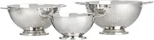Stainless Steel Colanders are an indispensable tool in the kitchen for rinsing fruit and vegetables, draining pastas and canned foods, straining yogurt and cheese, and more. The pedestal base provides excellent stability, while the flat wire handles ensure a firm grip with wet hands. Designed to nest inside each other for easy storage, durable stainless steel is easy to clean and doesn’t absorb odors or flavors. – SSC0824-3PC – 2 – A102